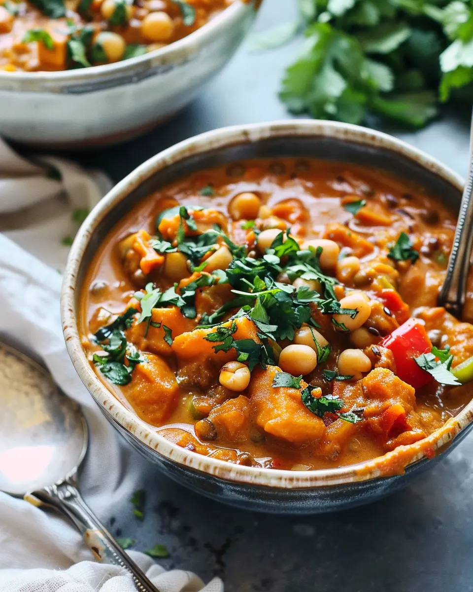 Ladle the stew into bowls and garnish with fresh herbs like cilantro or parsley for that finishing touch. Serve this dish warm, and enjoy the rich, creamy flavors that are both comforting and exotic.
