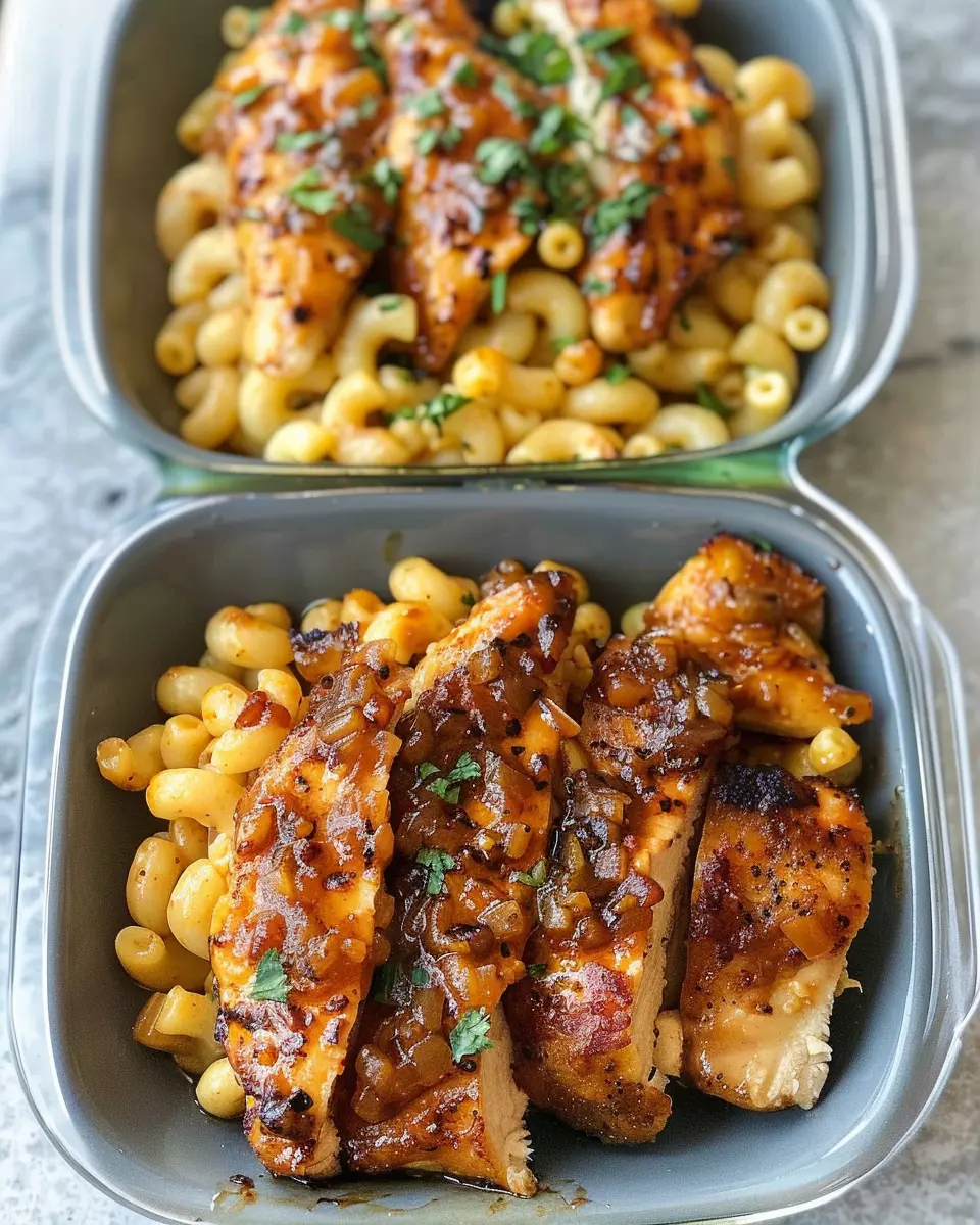High Protein Honey Garlic Butter Chicken with Mac & Cheese Delight