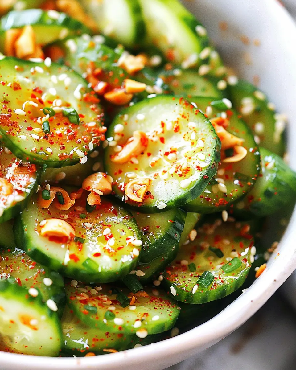 The Asian cucumber salad typically features fresh cucumbers as the star, complemented by a variety of ingredients like chopped scallions, sesame seeds, and a zesty dressing. This bright, crunchy dish is often infused with the umami flavors of soy sauce and the warmth of ginger, creating a flavor profile that’s hard to resist. What really sets it apart is the balancing act of flavors—sweetness from sugar, tang from rice vinegar, and spice from red pepper flakes. It’s a salad that feels both light and satisfying.