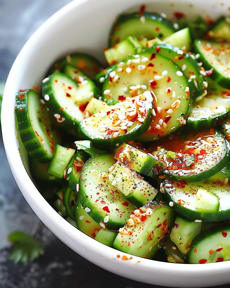 A refreshing and crunchy Asian cucumber salad that complements any meal.