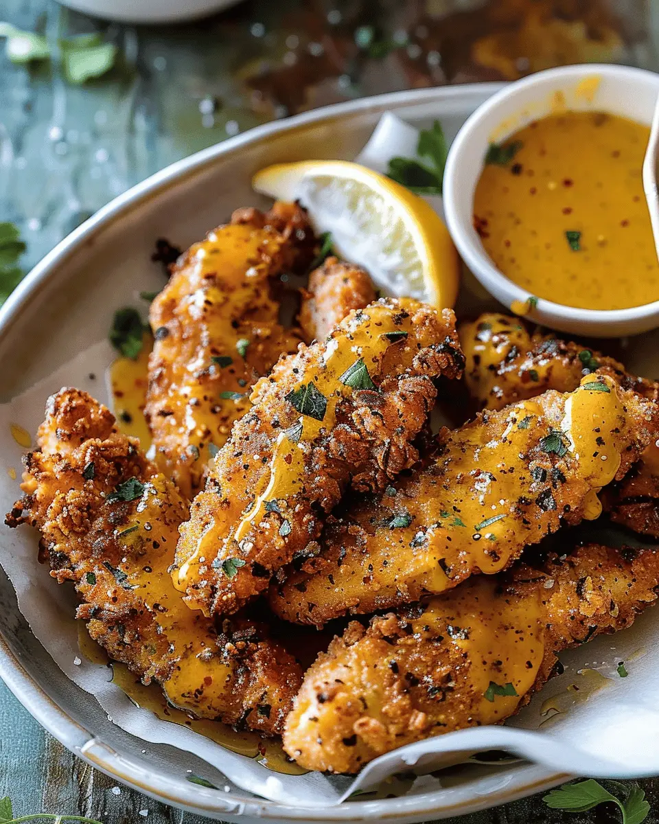 And there you have it! Your baked spicy ranch chicken fingers are ready to serve, paired beautifully with a side of honey mustard for dipping. Perfect for any occasion, they’ll impress your friends and satisfy your taste buds. Enjoy!