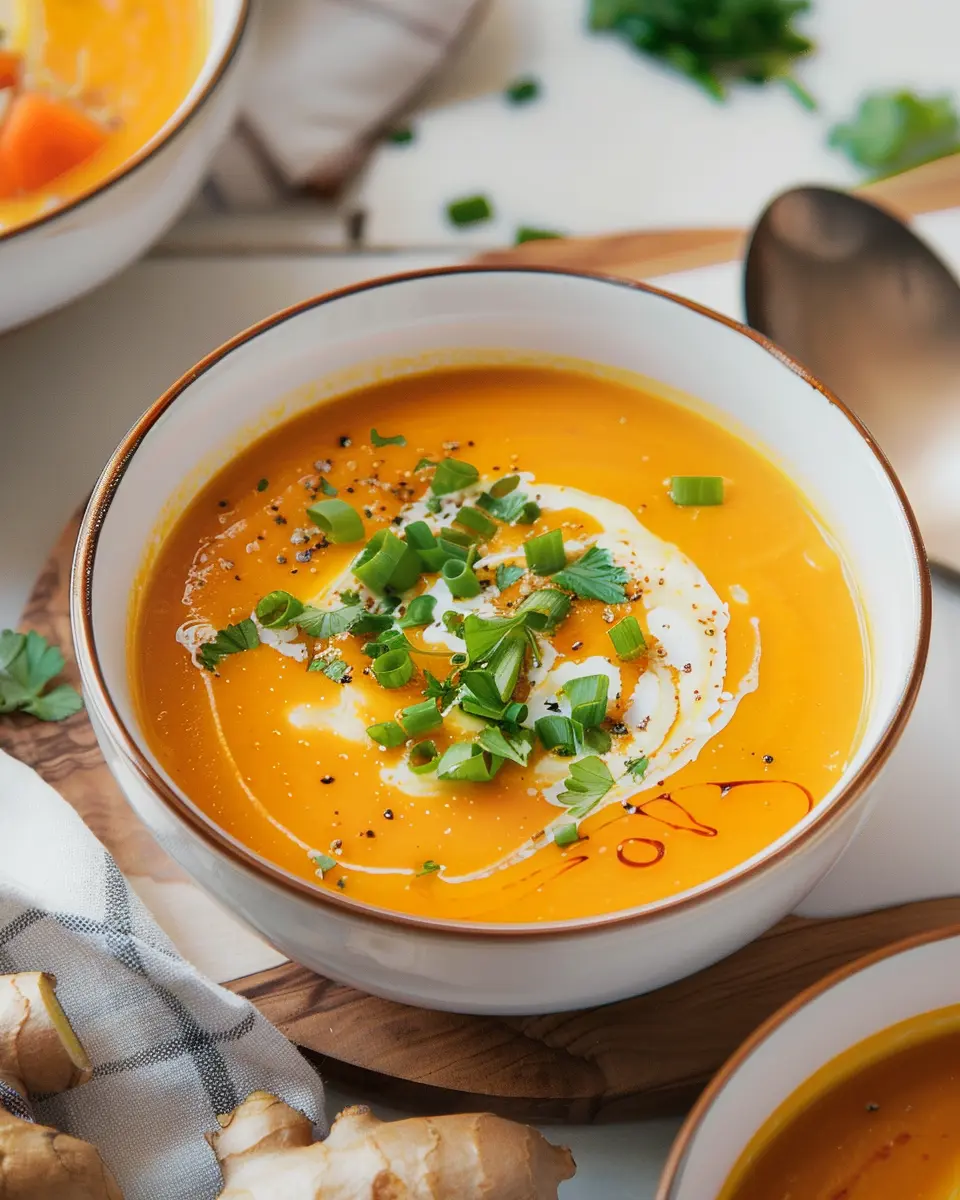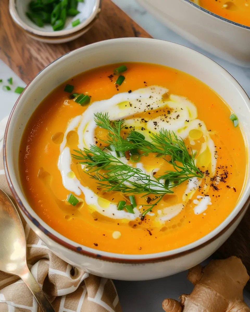 And there you have it! Your carrot and ginger soup is ready to be served, warm and inviting. Whether you enjoy it as a starter or a main course, it’s sure to impress. Pair it with crusty bread or a fresh salad for a complete meal.