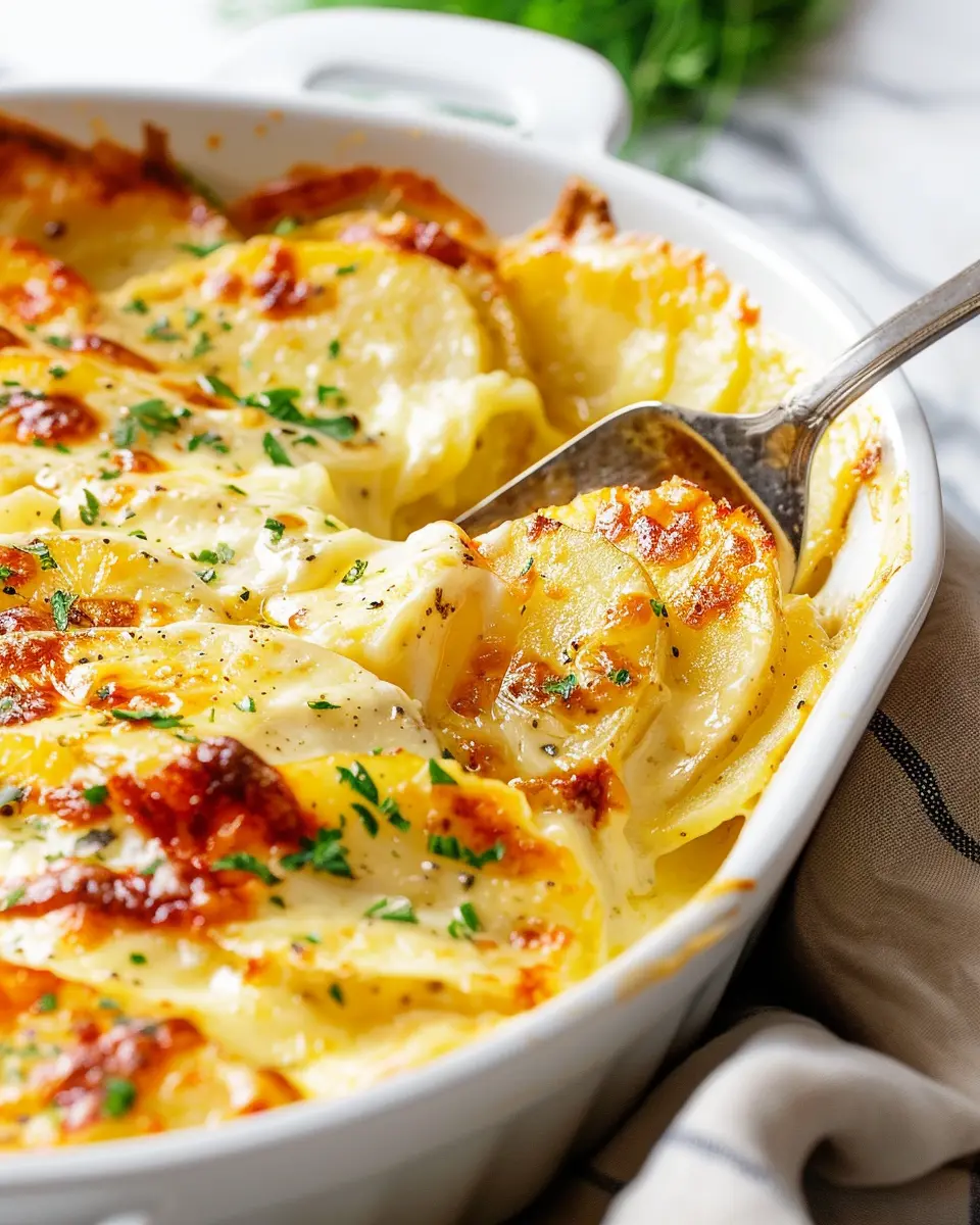 Creamy Scalloped Potatoes with Turkey Bacon and Chicken Ham Delight