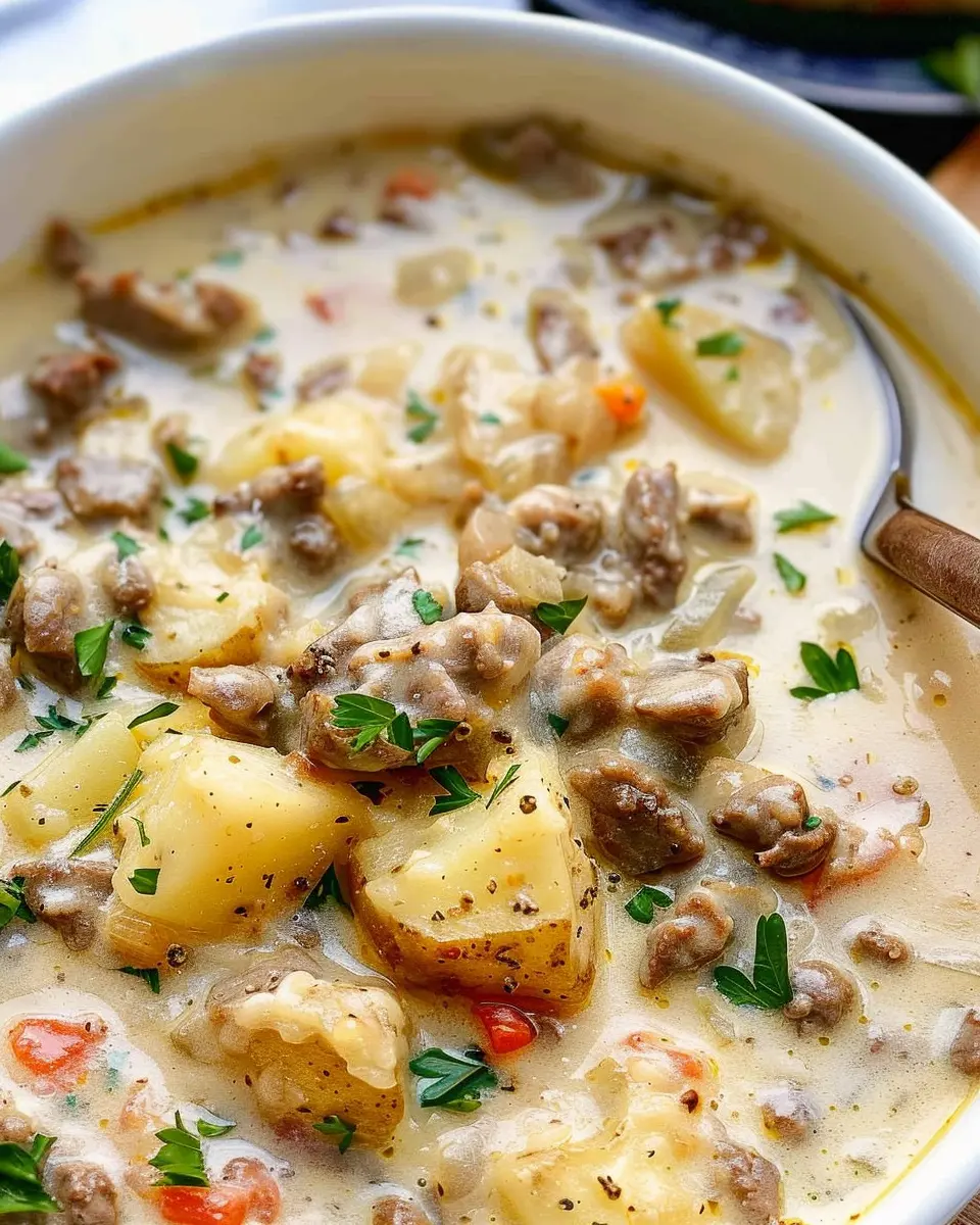 Keywords: Cheesesteak Potato Soup, Comfort Food