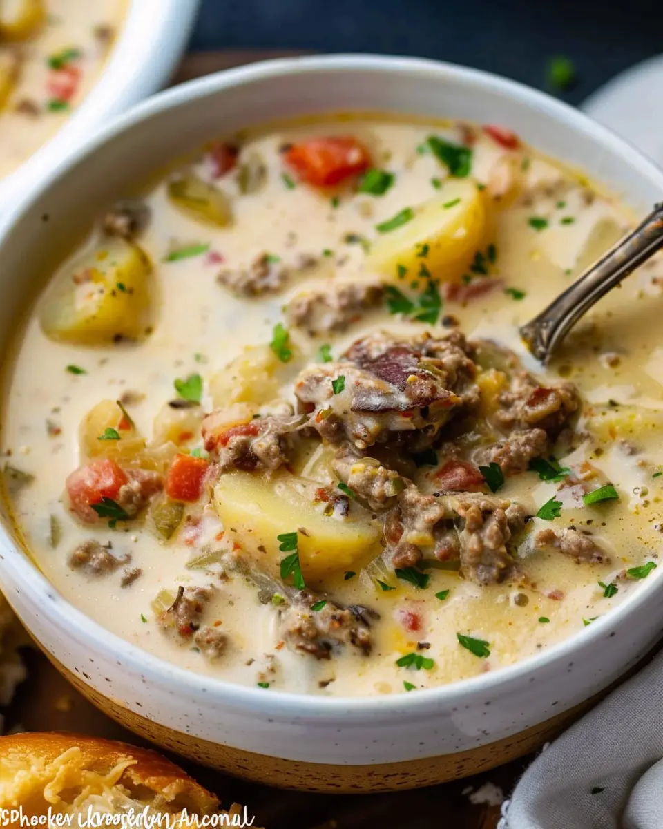 • Nutritional Boost: Unlike some traditional cheesy soups, this version maintains a well-rounded nutritional profile. The potatoes offer fiber, while the beef and bacon contribute protein.