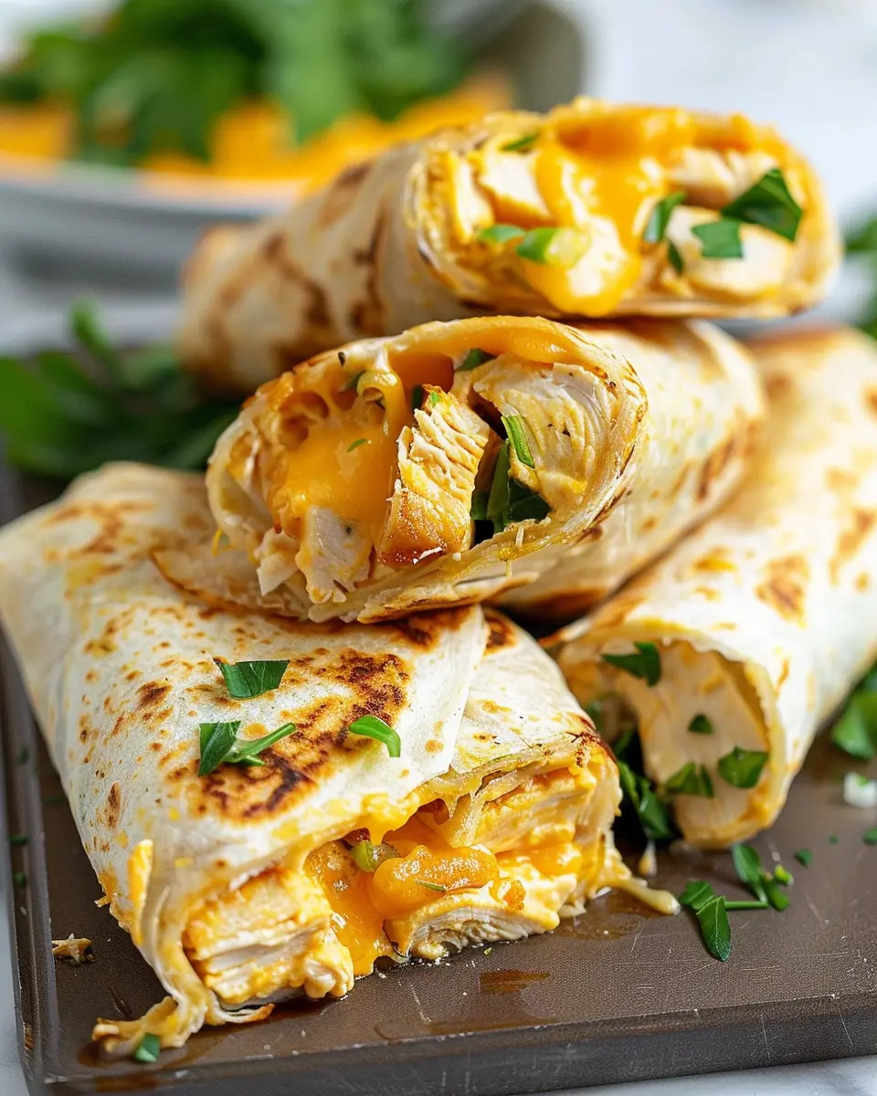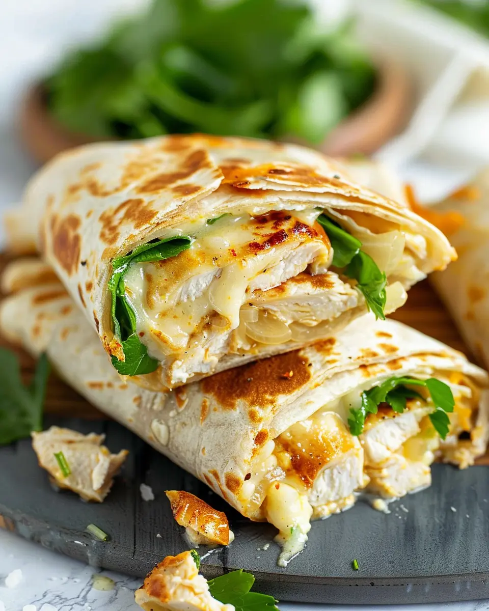 Discover the delightful combination of cheesy goodness and garlic flavor in these easy-to-make chicken wraps, perfect for home cooks looking for a quick meal.