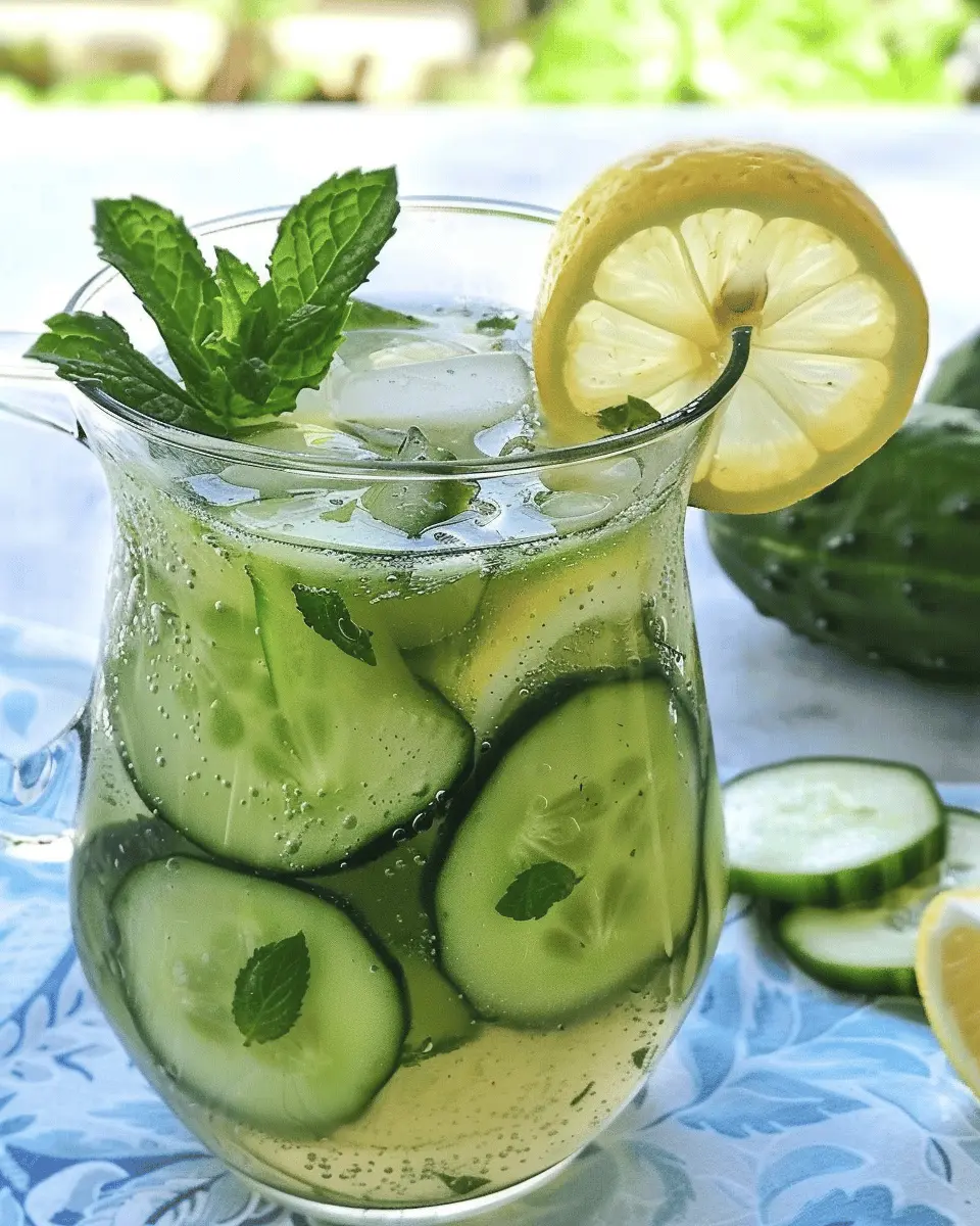 - Instructions: Prepare your cucumber and mint as usual, then add chilled sparkling water just before serving. This will give your drink a fun fizz that feels festive and light.
