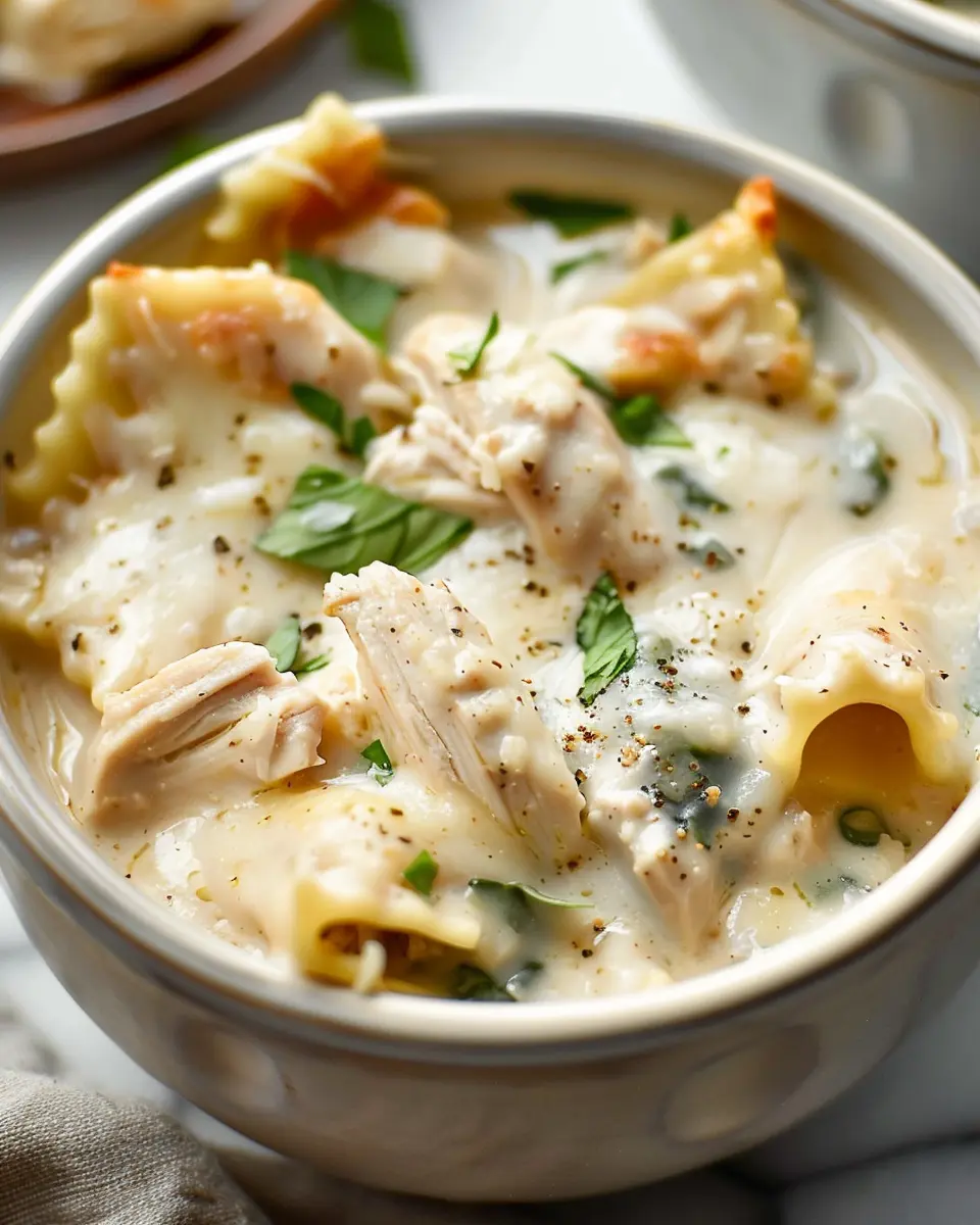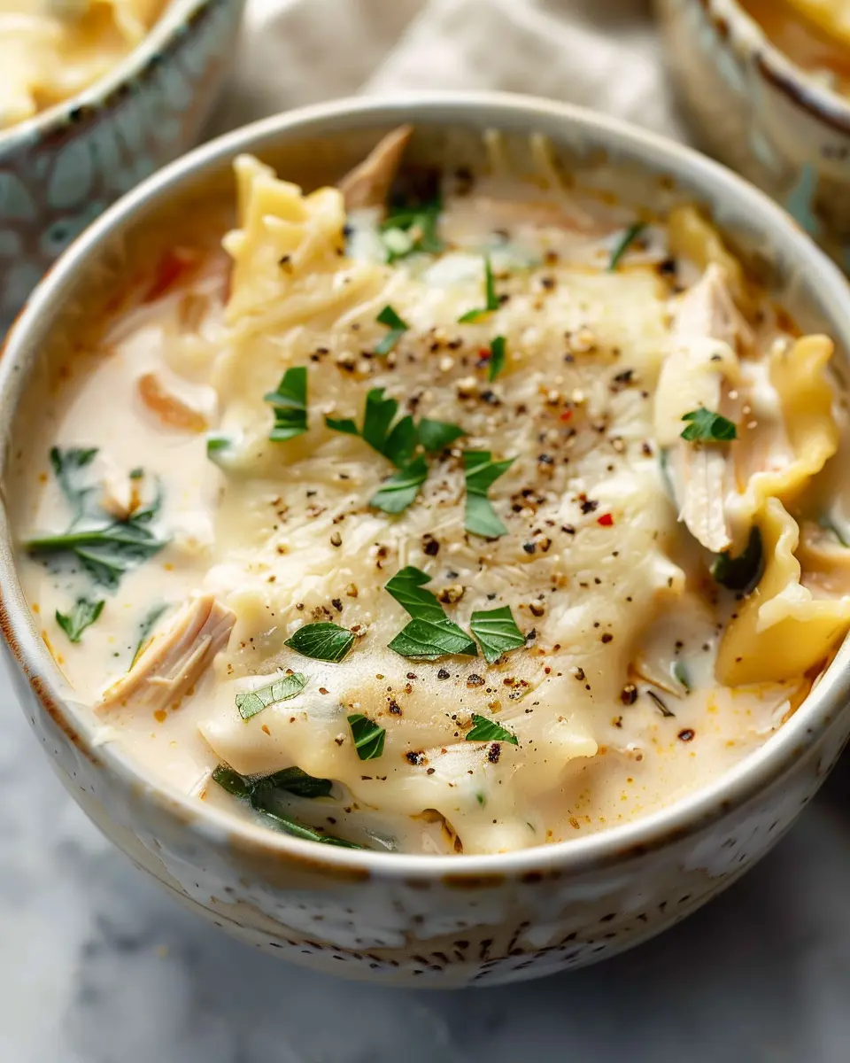 Indulge in the warmth of Creamy Chicken Lasagna Soup, a delightful blend of tender chicken, savory broth, and cheesy goodness.
