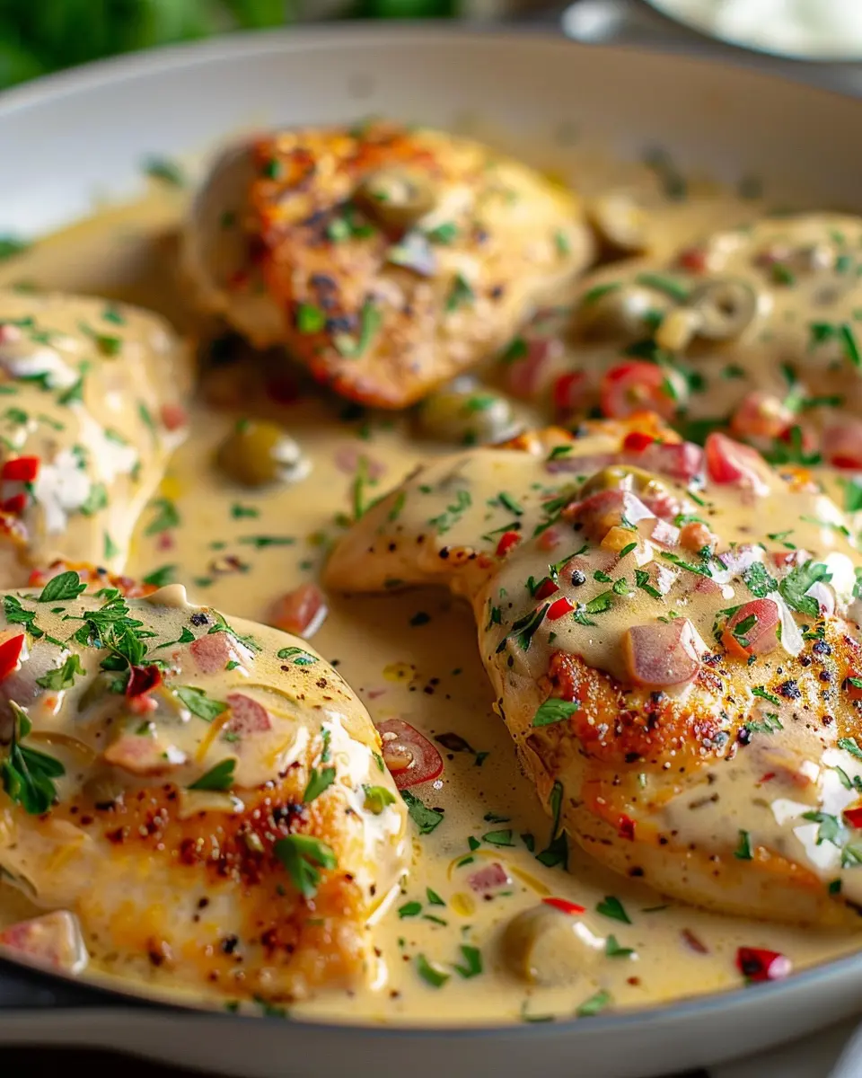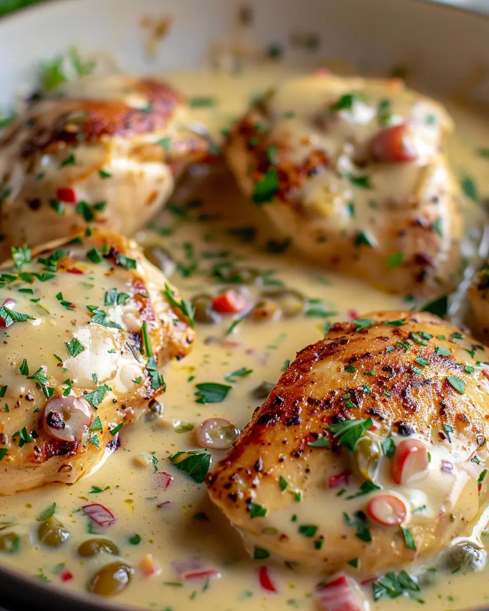 Add the seared chicken back into the skillet, ensuring it’s drenched in that luscious sauce. Let it simmer for another 2-3 minutes, allowing the flavors to meld beautifully. Once done, you can garnish it with fresh chopped parsley or some crumbled feta for a savory finish.