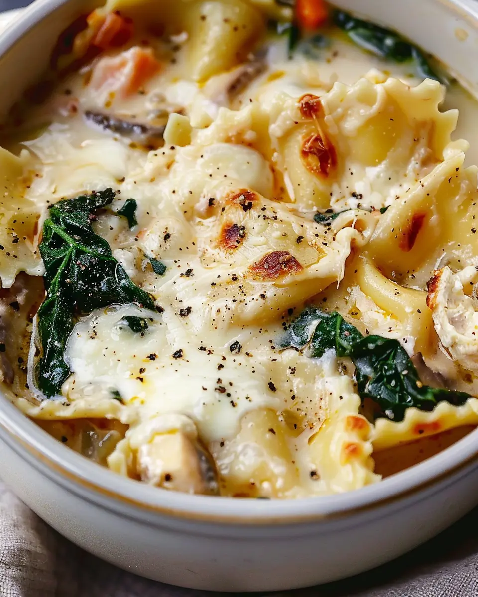Creamy White Lasagna Soup: Indulgent Veggie Delight with Turkey Bacon and Chicken Ham
