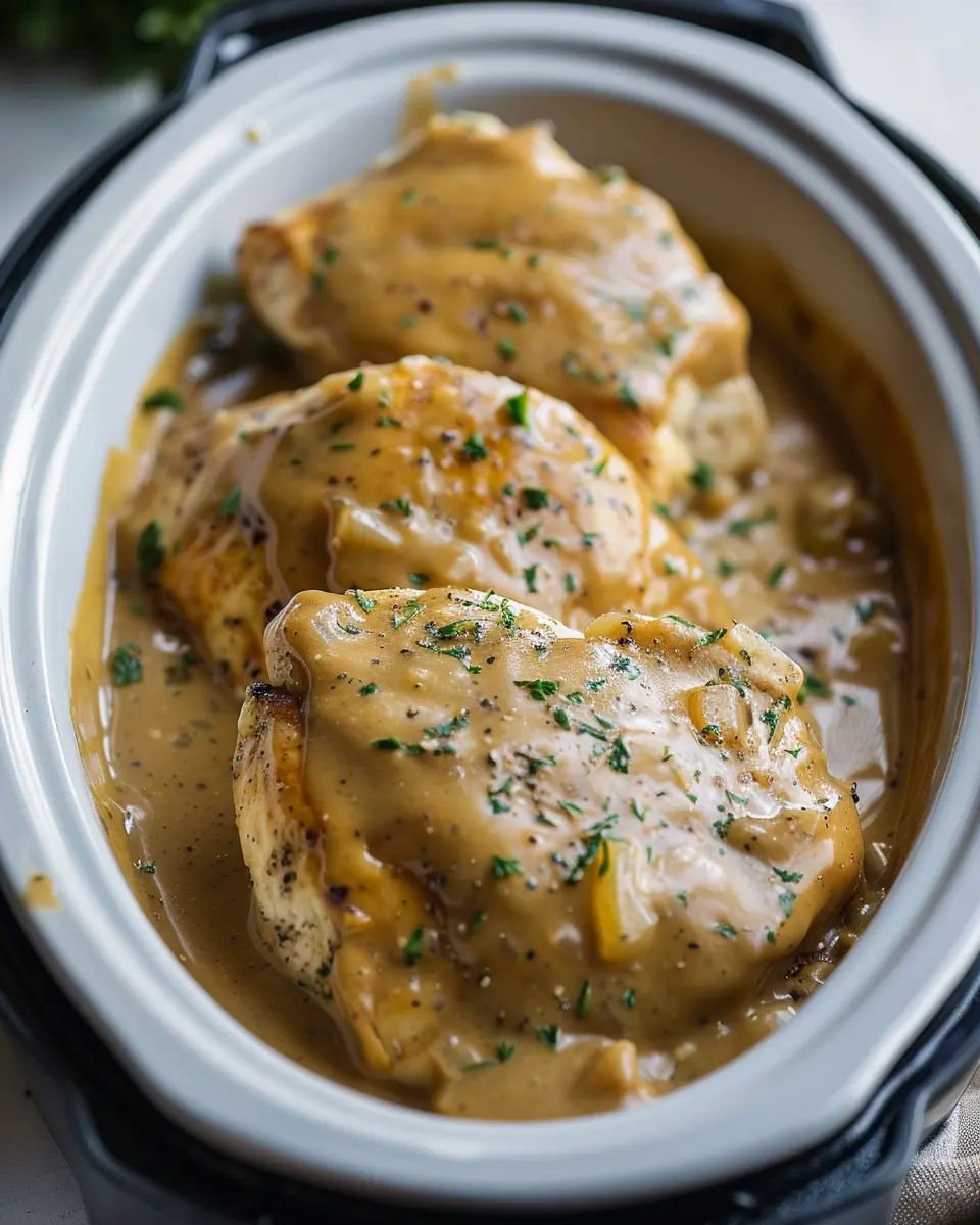 A delicious and easy recipe for making chicken and gravy in a crockpot, perfect for family dinners.