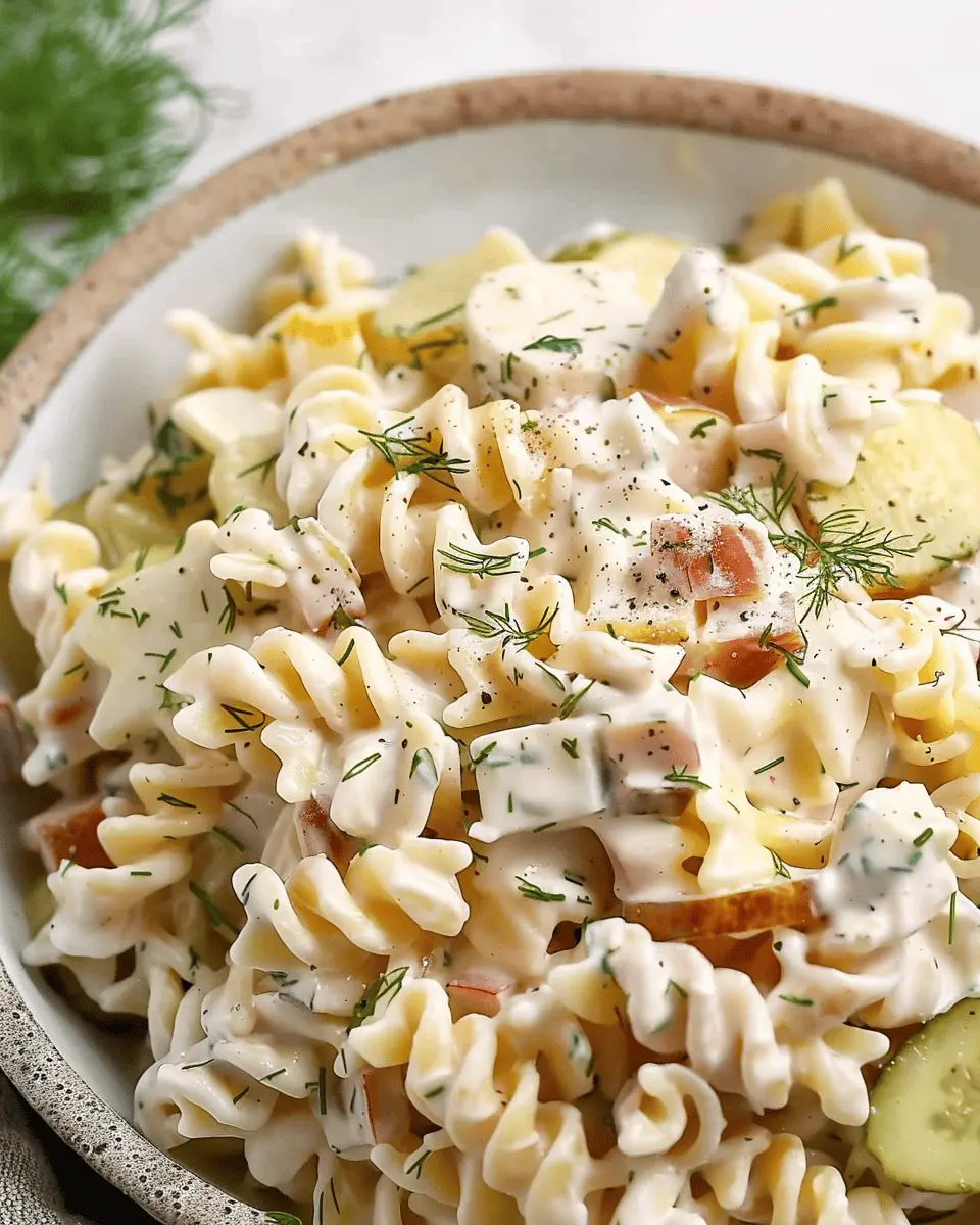 Enjoy this delicious Dill Pickle Pasta Salad with a twist of turkey bacon for a delightful and easy recipe that’s perfect for any gathering.