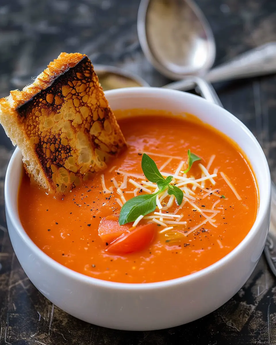 If you enjoy a bit of a kick, try your hand at a spicy iteration! Add chopped jalapeños or a pinch of red pepper flakes while cooking your tomatoes. For those who really want to crank up the heat, consider swirling in some sriracha just before serving. Not only does it add spice, but it also gives your soup a beautiful depth of flavor. For a creamy touch, you can finish it off with a dollop of sour cream or Greek yogurt to balance the heat.