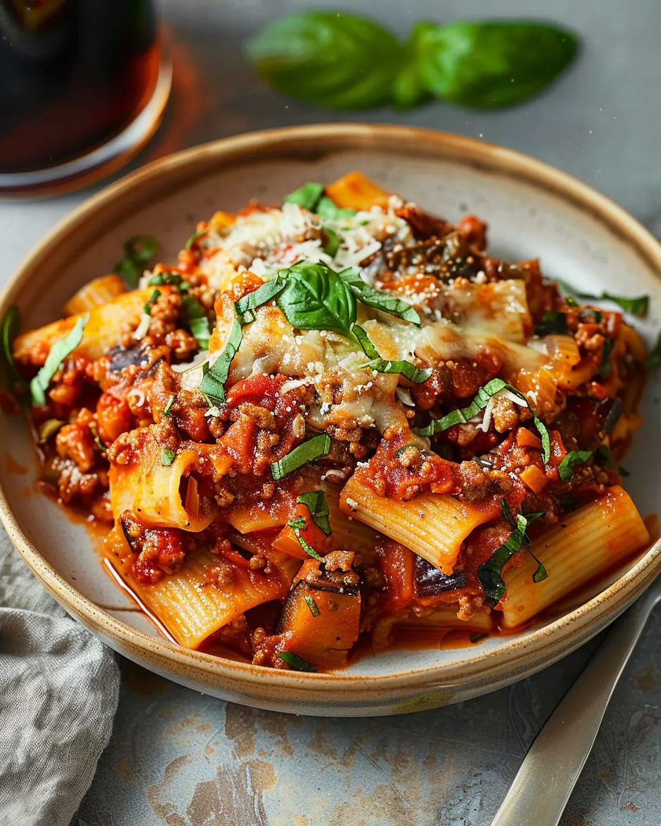 To make your eggplant Bolognese look as amazing as it tastes, use wide, shallow bowls. This technique allows the visually appealing layers of your dish to shine. Garnish with freshly grated cheese—Parmesan or vegan alternatives—before serving. A drizzle of high-quality olive oil adds richness and sophistication.