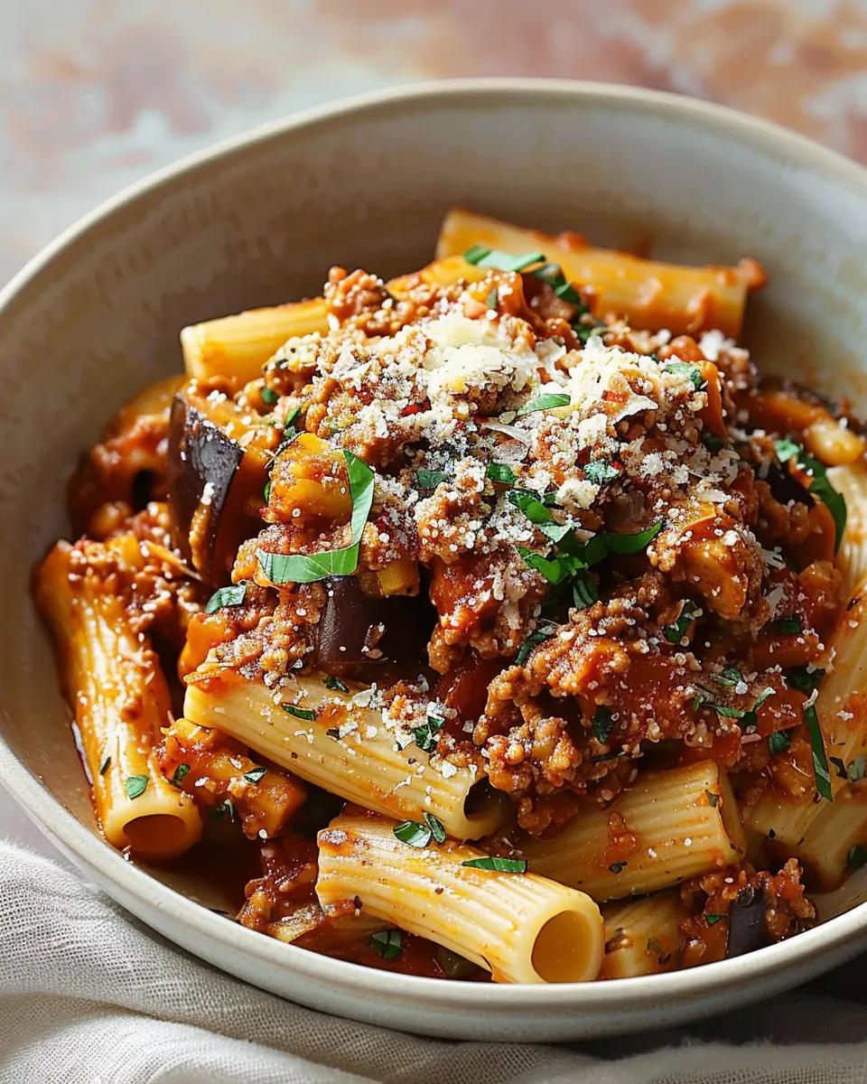 Keywords: Eggplant Bolognese, Comfort Food, Vegetarian Pasta
