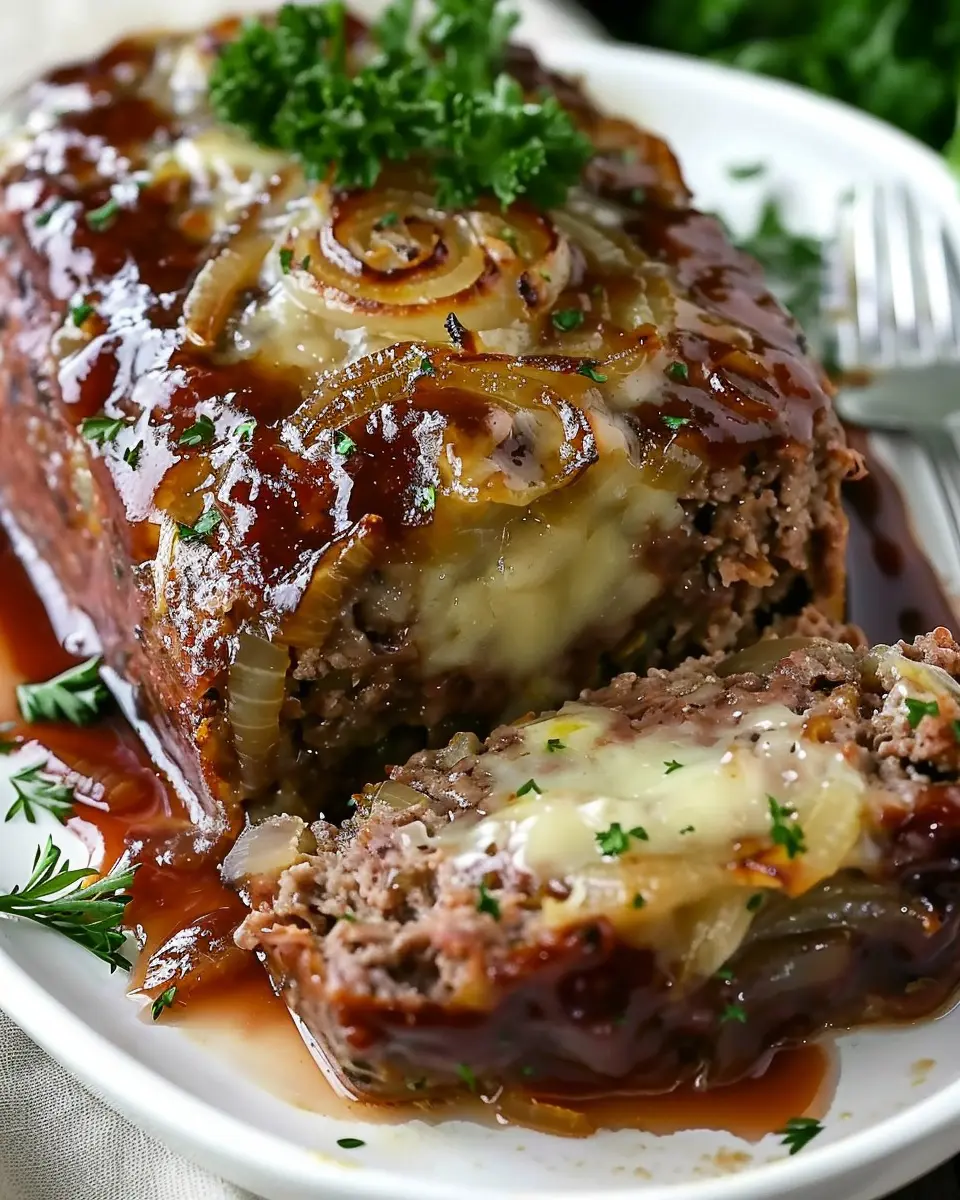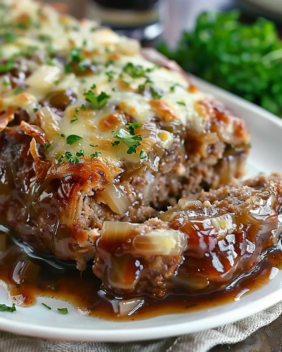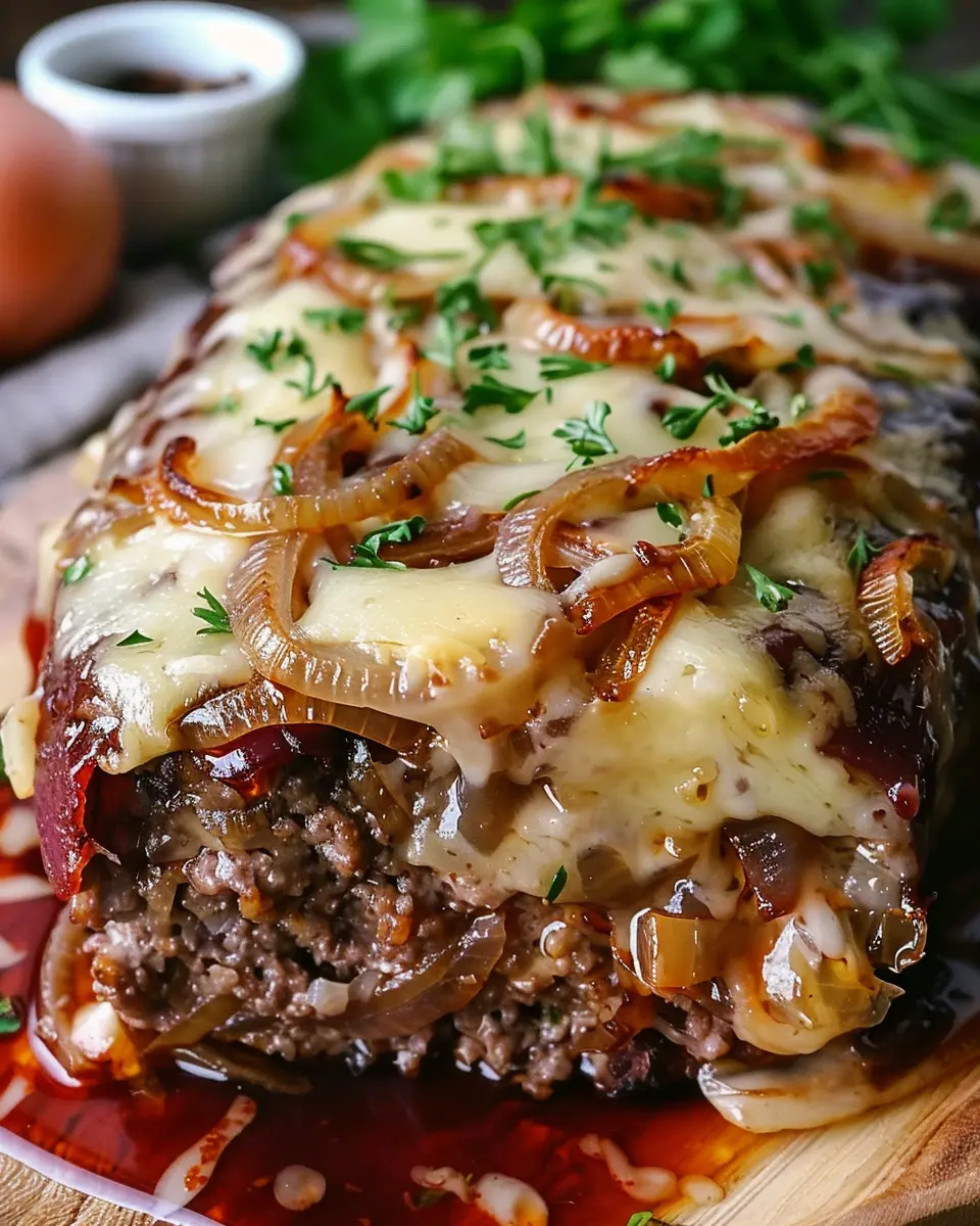 PrintFrench Onion Meatloaf with Turkey Bacon: A Juicy Twist on Comfort Food