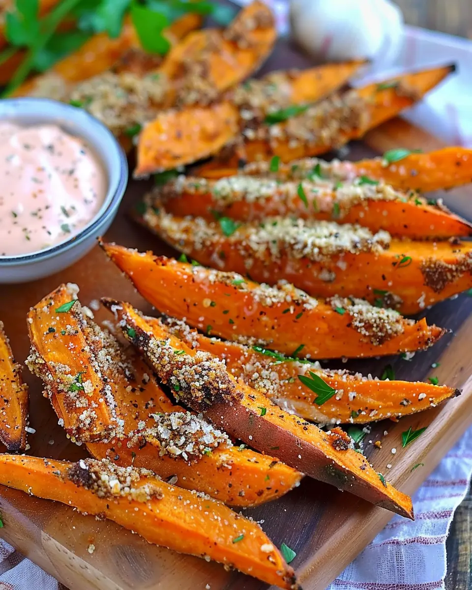 In conclusion, Garlic Parmesan Sweet Potato Wedges are not just a side dish; they’re a delightful balance of flavors and textures that can elevate any meal. Whether you serve them as an appetizer, a side to your favorite protein, or as a healthy snack, these wedges are versatile and easy to prepare. Feel free to experiment with herbs or spices, customizing the recipe to match your palate. Remember, sweet potatoes are packed with nutrients, making this dish a wholesome choice. For a delicious variation, consider pairing them with a tangy yogurt dip or a homemade herb-infused oil. Happy cooking!
