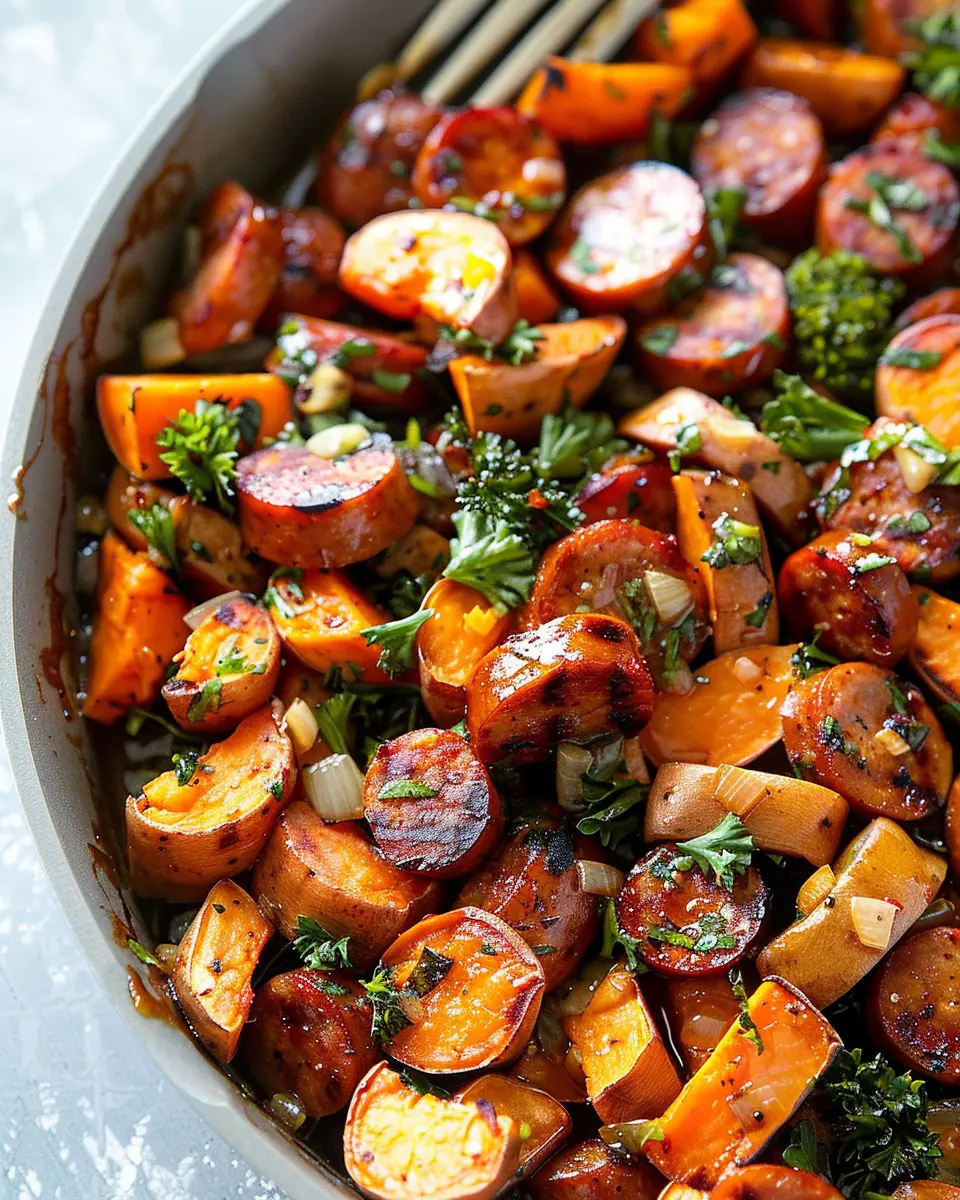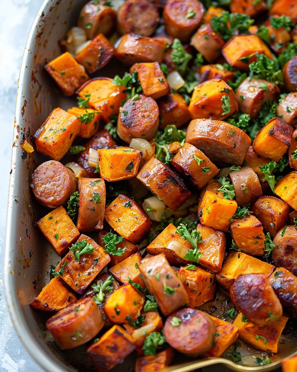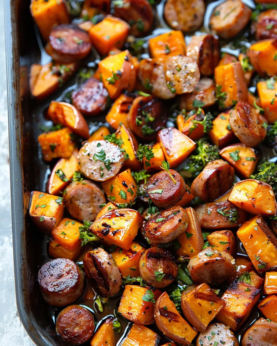 Monitor the cooking time closely. While the sausages require a bit longer, the sweet potatoes will cook faster. Want to make it a complete meal? Try pairing this dish with a light salad or steamed veggies for a balanced plate.