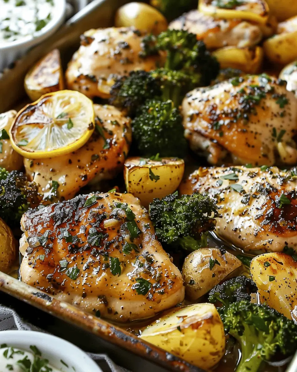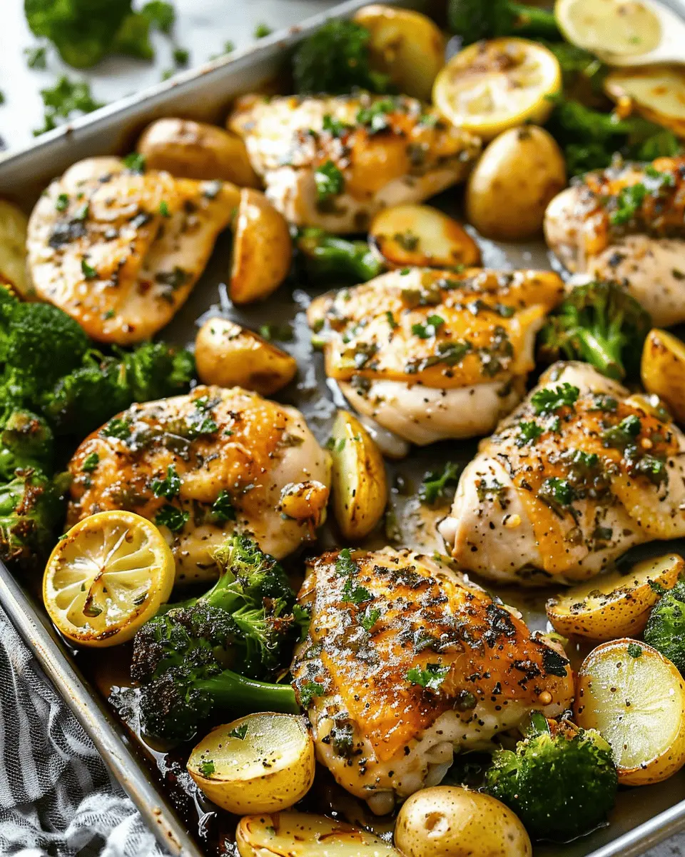 PrintLemon Garlic Chicken: Easy Sheet Pan Dinner with Potatoes & Broccoli