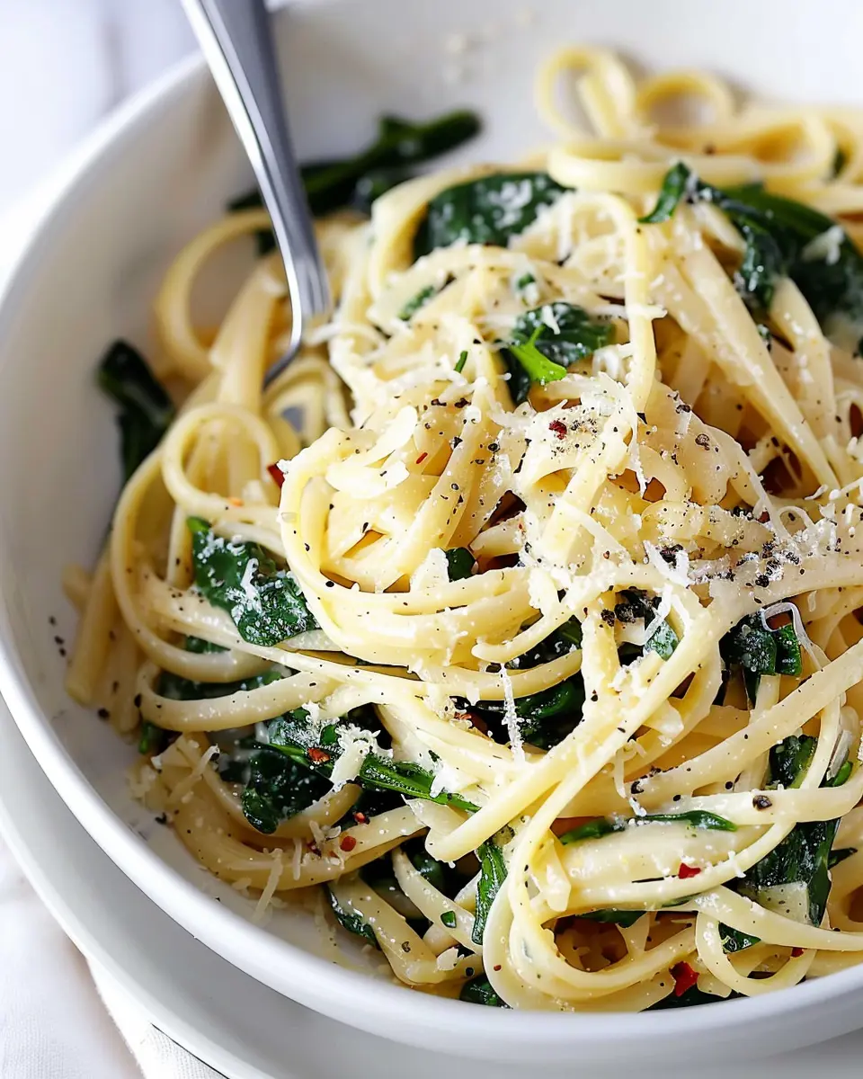 Timing is Key: To keep your spinach vibrant and fresh, add it to the pasta just a minute before it finishes cooking. This allows it to cook down without losing its nutrients and color.