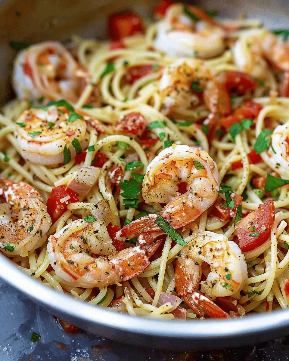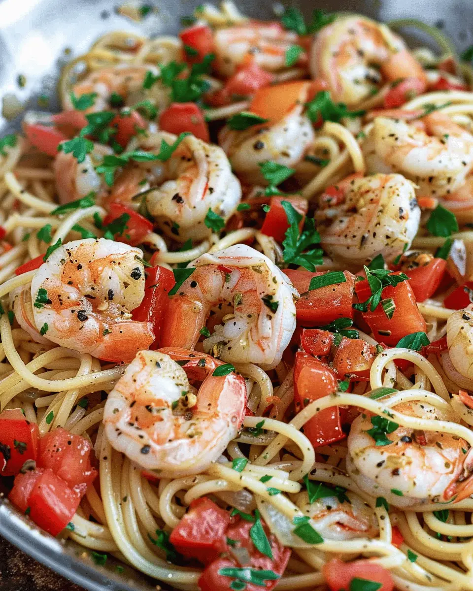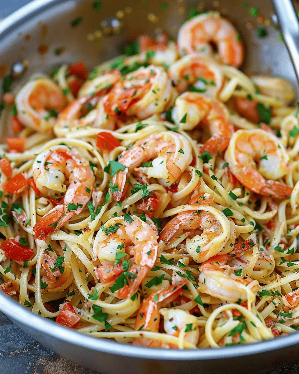 A delightful Mediterranean dish featuring succulent shrimp and linguine, perfect for a quick weeknight dinner.