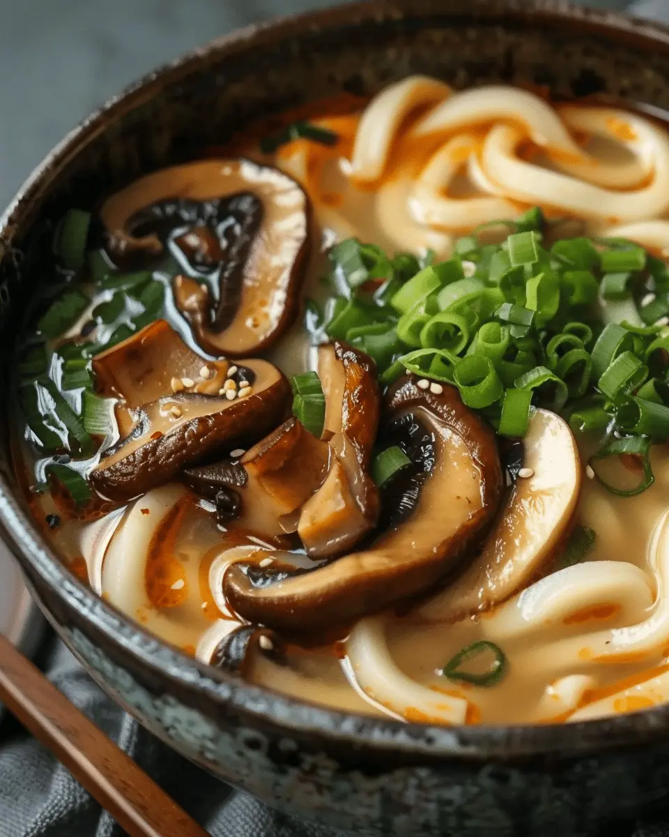 In a fast-paced world, Miso Udon Noodle Soup offers not just a comfort meal but also a delightful cooking experience. The rich umami flavor from the miso, paired with the tender texture of udon noodles and the savory teriyaki mushrooms, creates a dish that is both nourishing and satisfying. By preparing this meal at home, you can customize it to fit your taste, whether by adding your favorite vegetables or adjusting the seasoning. Cooking isn’t just about the food; it’s also a wonderful way to unwind and express creativity. So, roll up your sleeves and enjoy the delicious journey of making Miso Udon Noodle Soup!