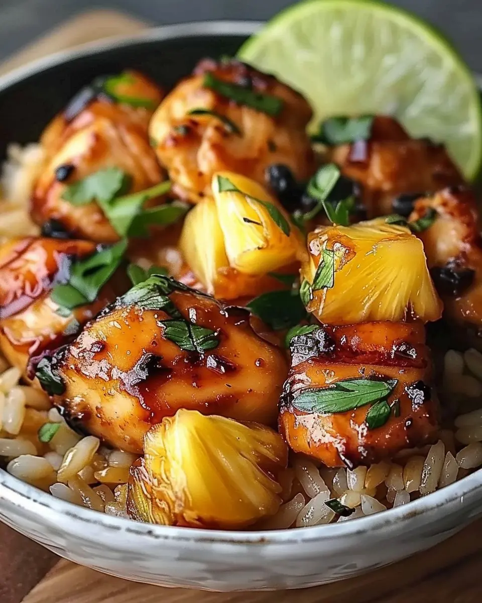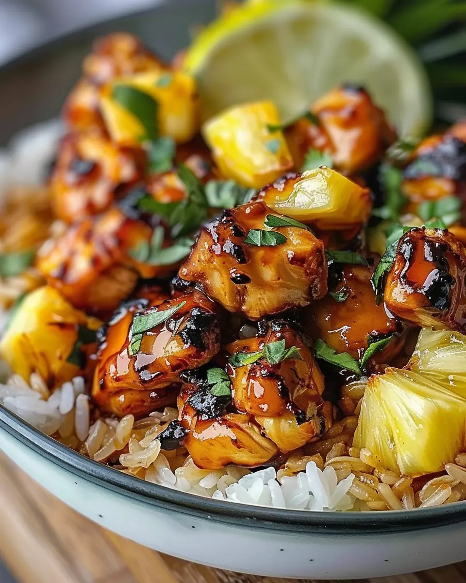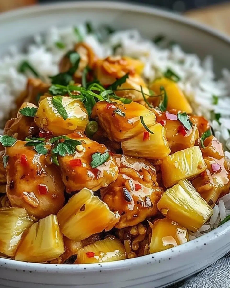 A delicious recipe combining juicy pineapple with tender chicken and fluffy rice, perfect for a hearty meal.
