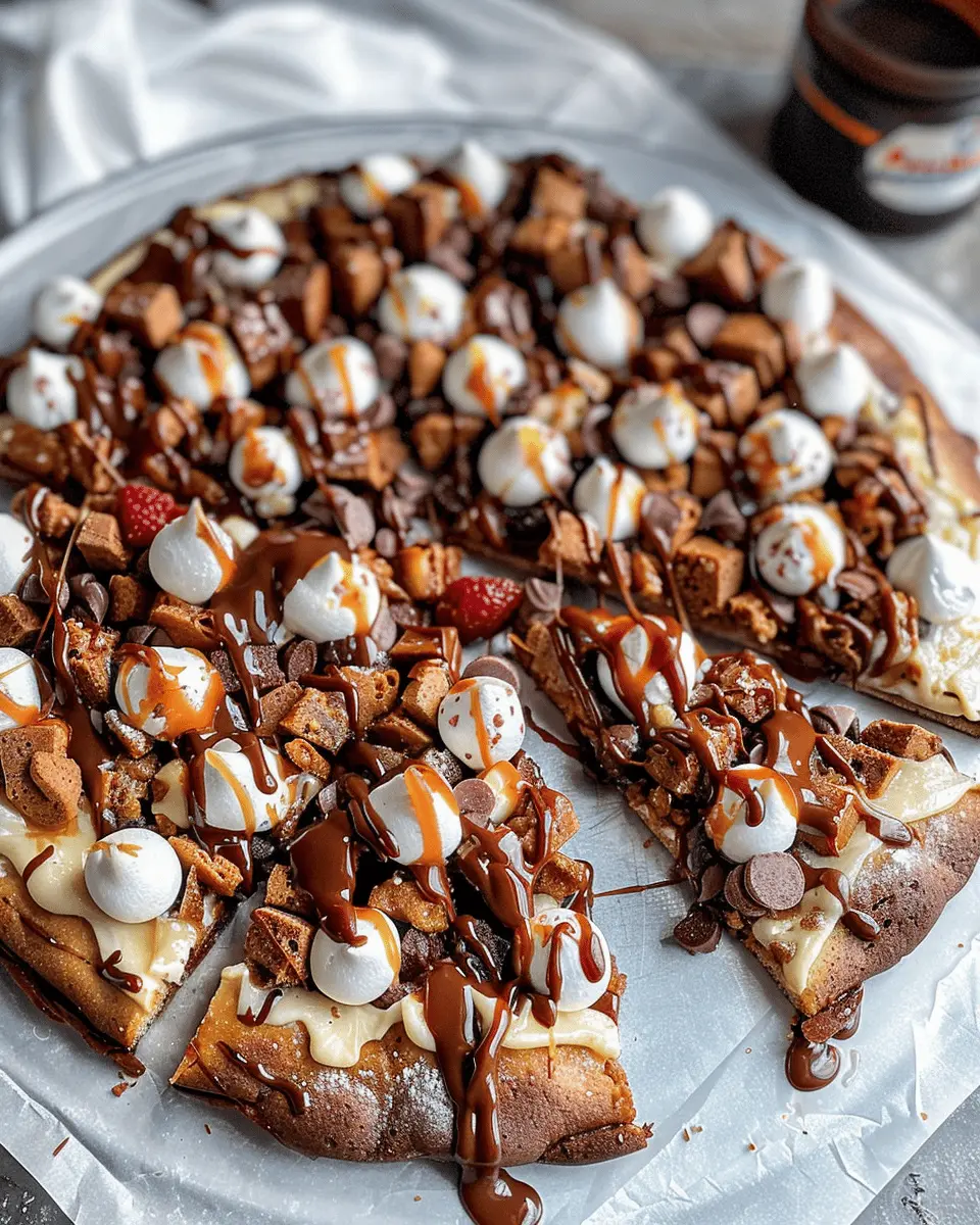 Indulge in the rich and delicious flavors of Rocky Road Dessert Pizza, a perfect treat for chocolate lovers!