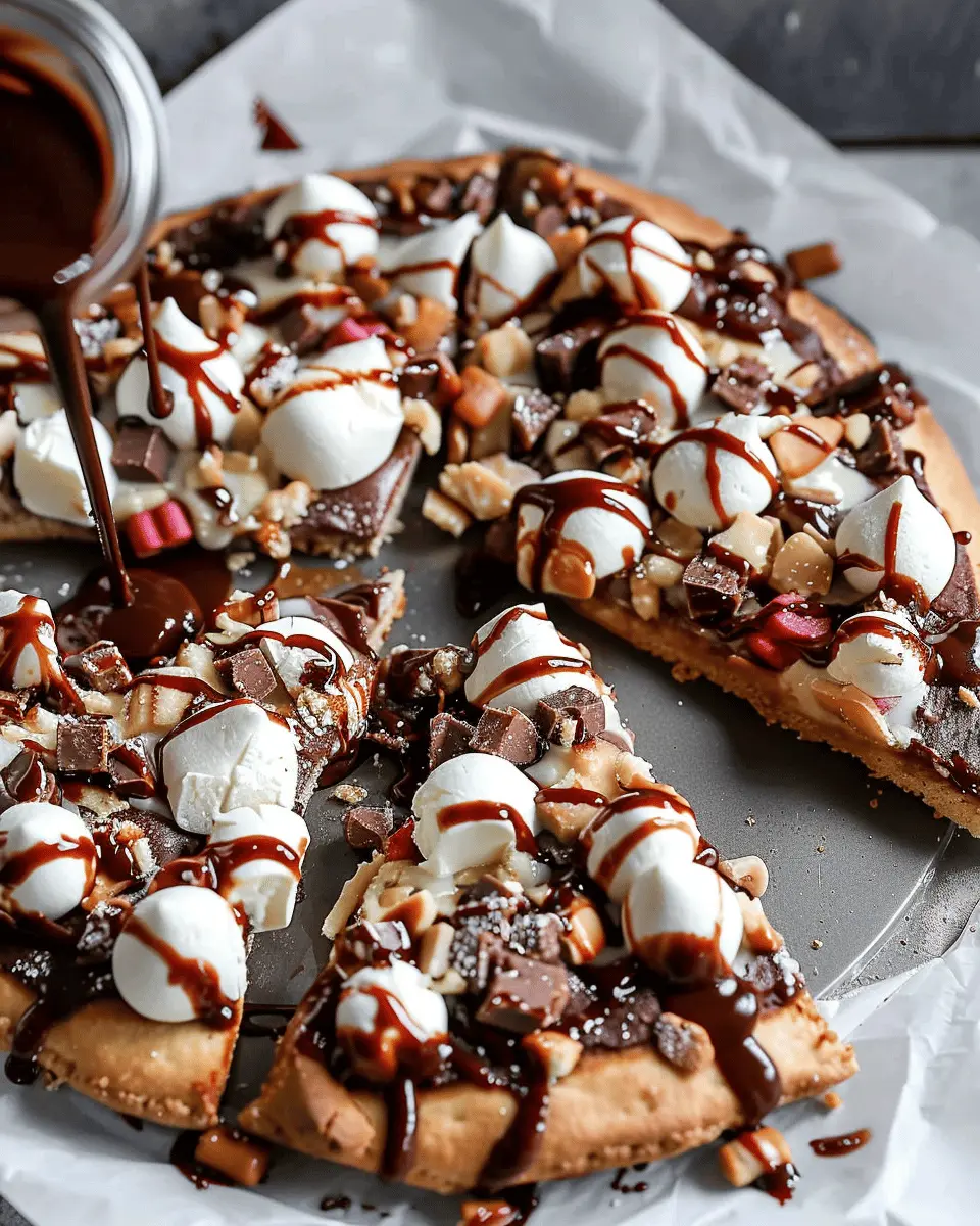 Absolutely! One of the great things about rocky road dessert pizza is that it can be made ahead of time. Prepare your crust and toppings, then assemble the pizza and store it in the fridge. Just cover it properly with plastic wrap or foil to keep it fresh. When your guests arrive, pop it in the oven for a quick heat-up, and it’ll taste just as delicious!
