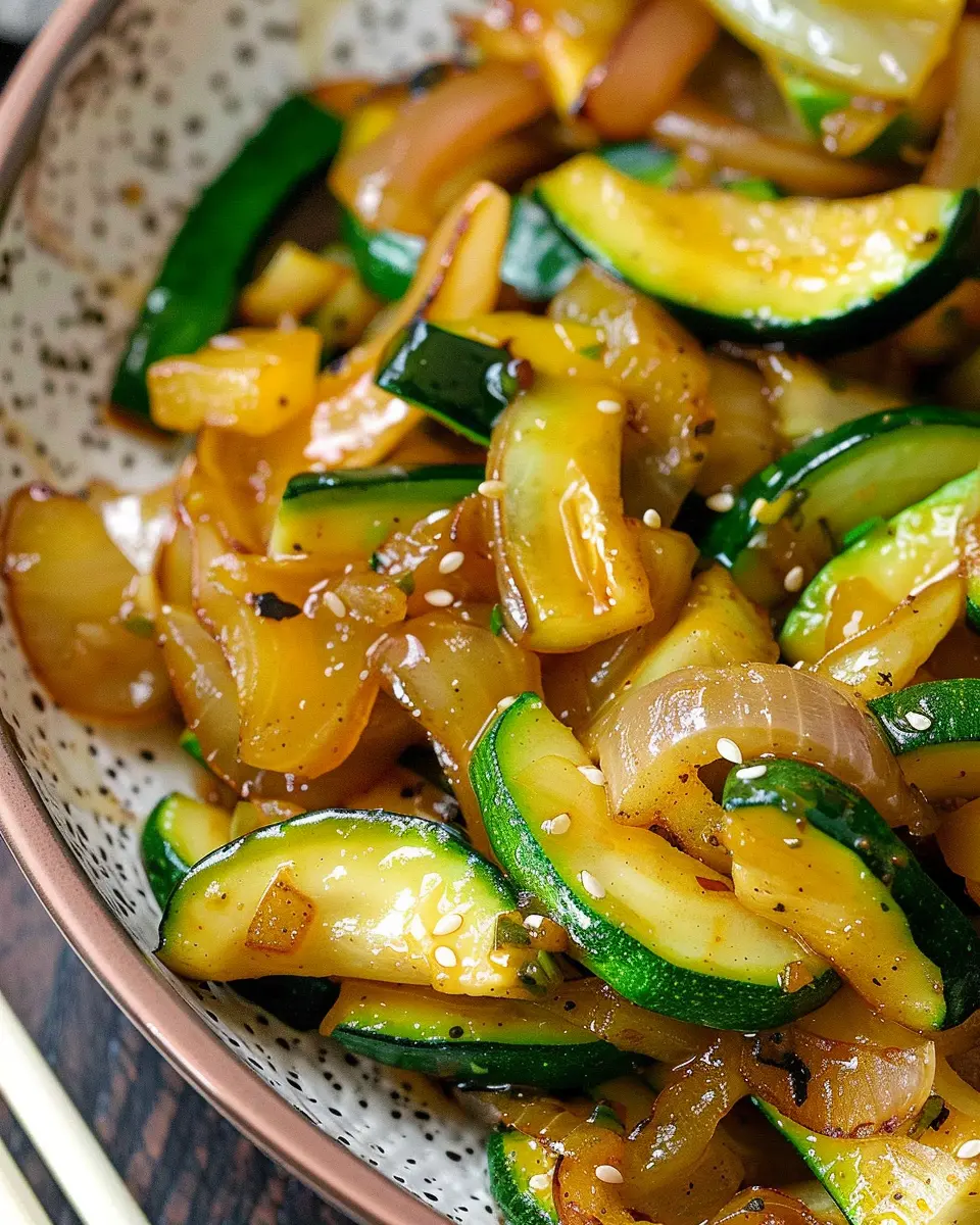 Once the onions are nicely sautéed, it’s time to add the zucchini. Toss those colorful rounds into the pan and mix them in with the onions. Cook for an additional 5-7 minutes, stirring occasionally, until the zucchini is tender but still has a bit of crunch. You want to maintain that vibrant green color and fresh taste—don’t overcook them!