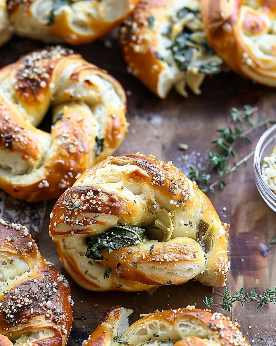 These Spinach and Artichoke Stuffed Soft Pretzels are a delightful twist on classic pretzels, combining the rich flavors of spinach and artichokes in a warm, soft dough.