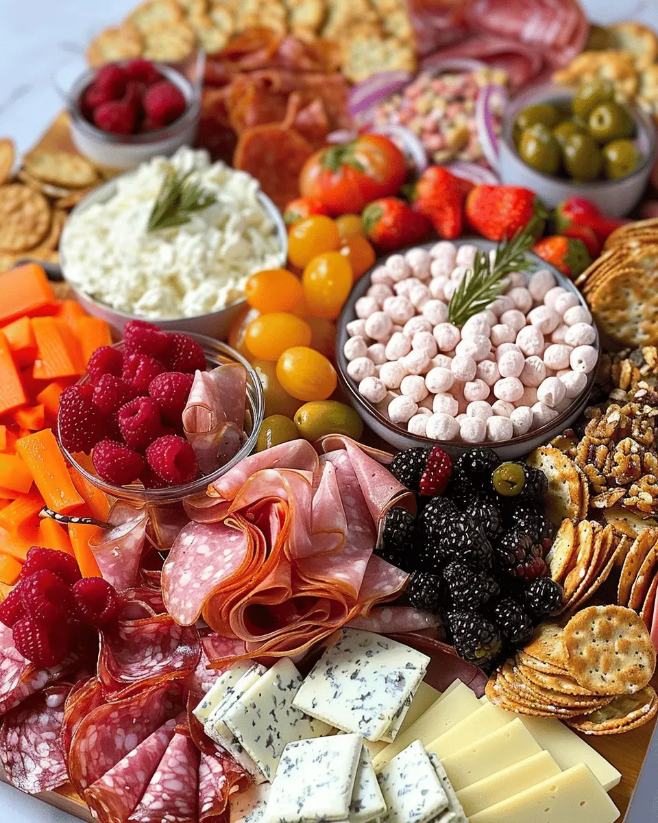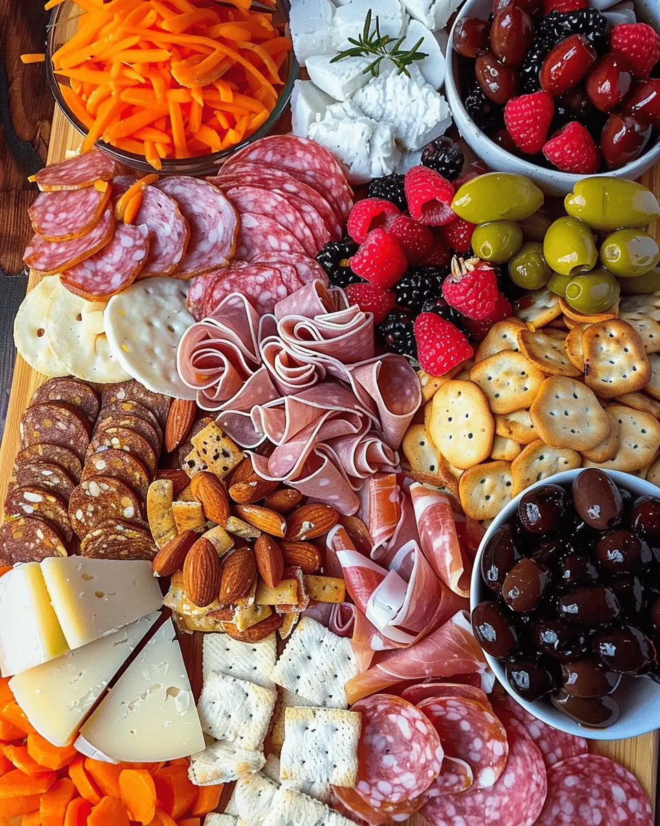 Cheese: A mix of creamy brie and sharp cheddar will elevate your board. Consider adding a tangy blue cheese for those adventurous tasters.
