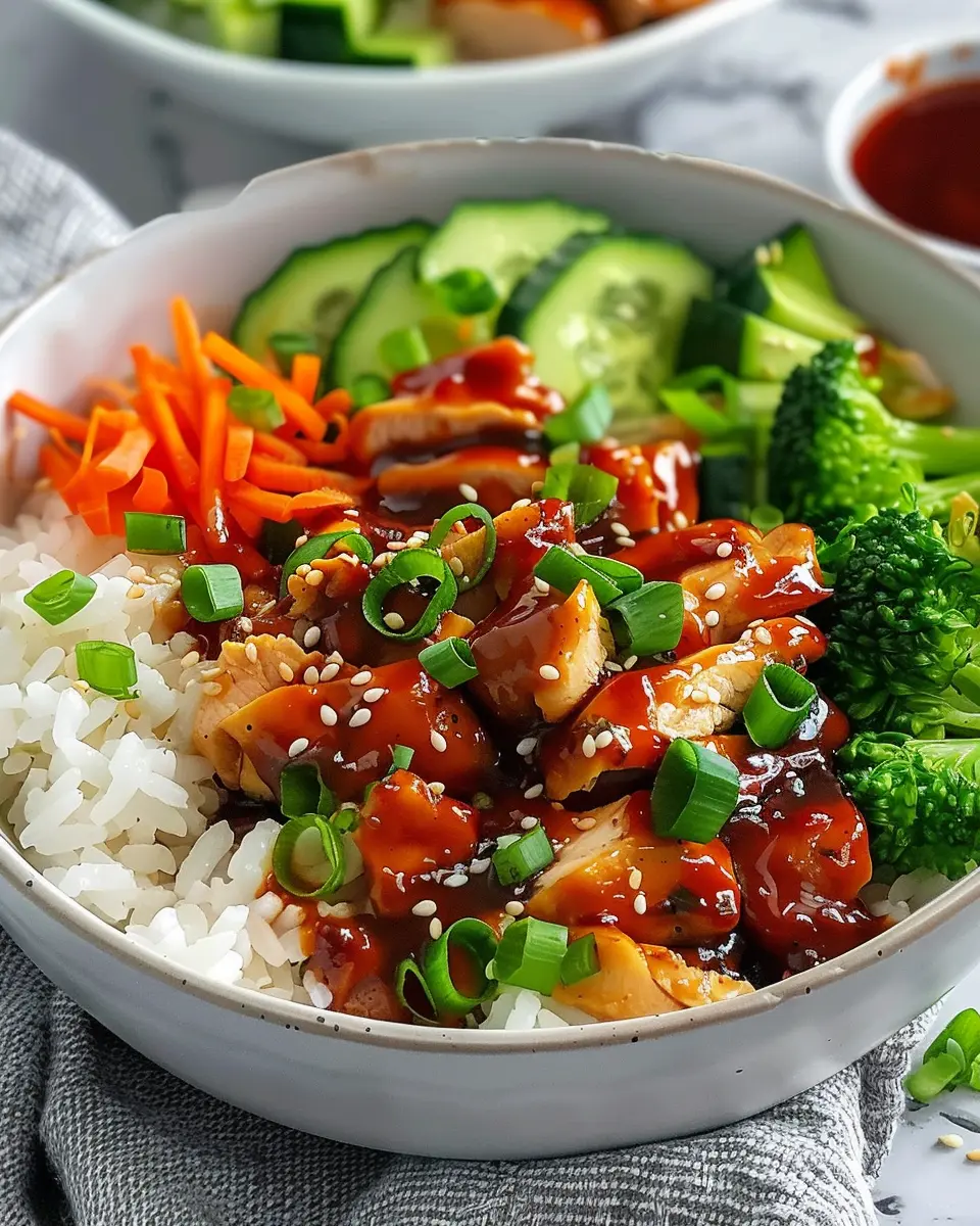 Nutrient-Rich: Loaded with protein from the chicken and vitamins from the veggies, this rice bowl provides a balanced meal in one bowl. According to Healthline, maintaining a nutritious diet can significantly improve your productivity and overall well-being.