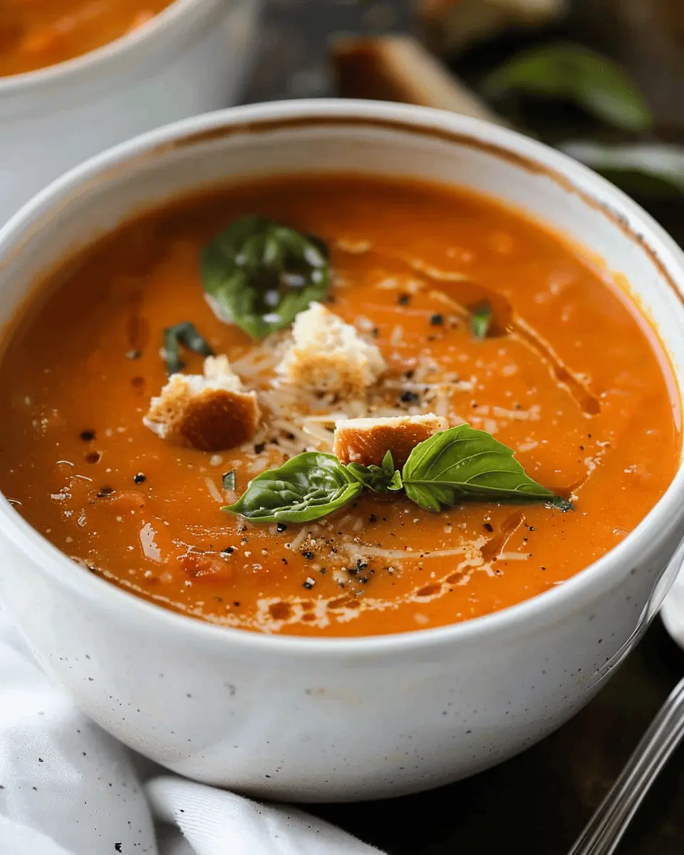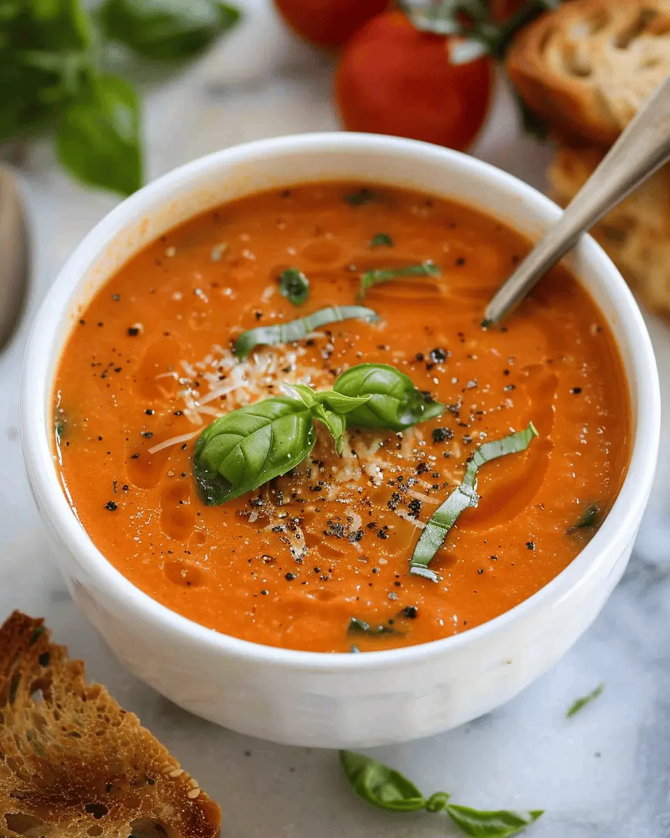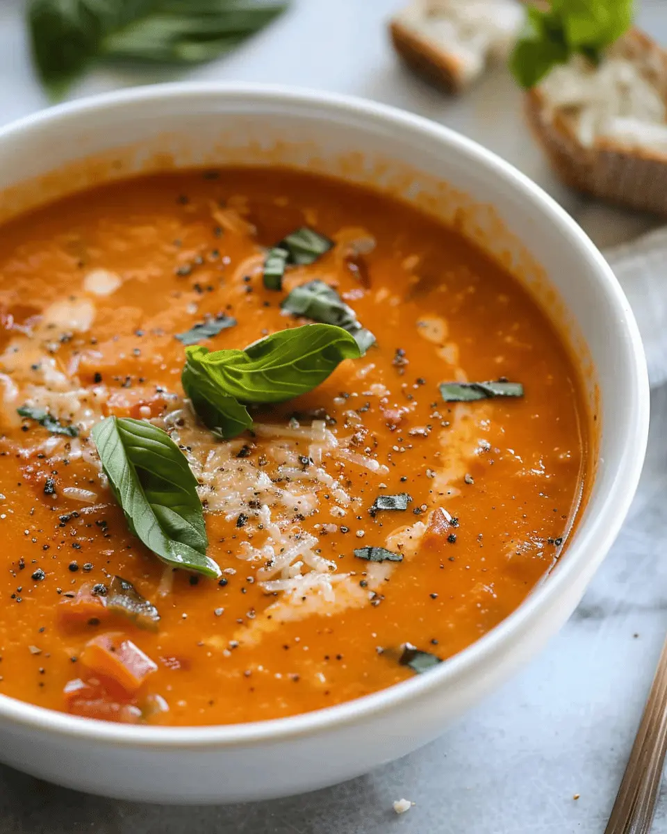 PrintTomato and Basil Soup with Parmesan: Best Comfort Food Recipe