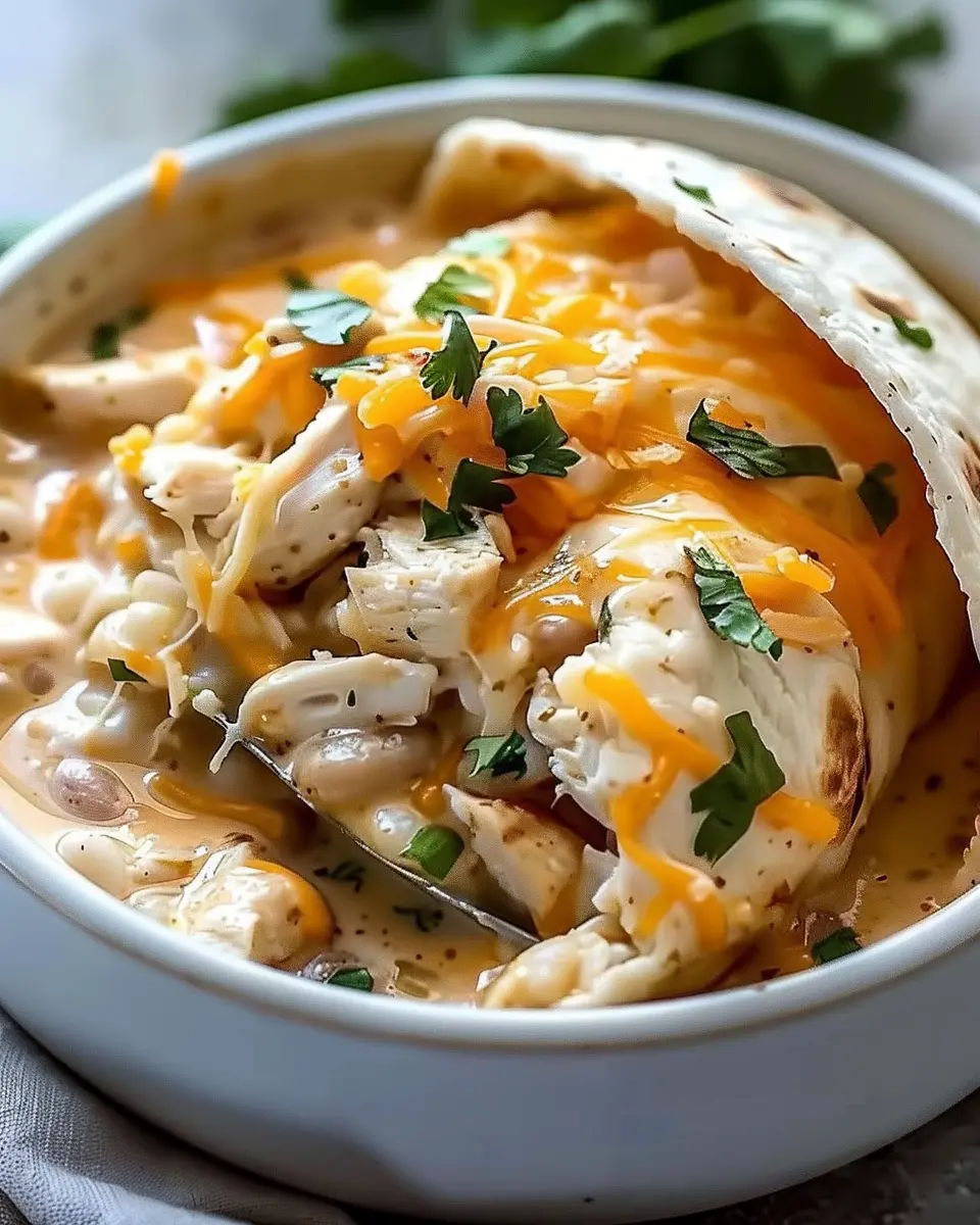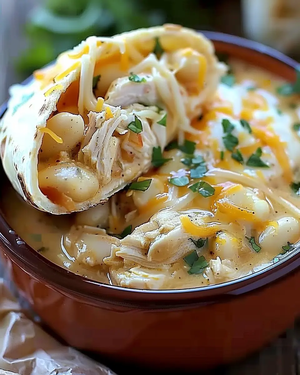 This White Chicken Chili is a comforting, healthy dish featuring shredded chicken and white beans, perfect for cozy nights.